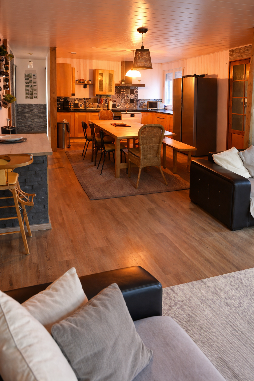 Un espace salon chaleureux, pensé pour la détente et la convivialité, en toute saison